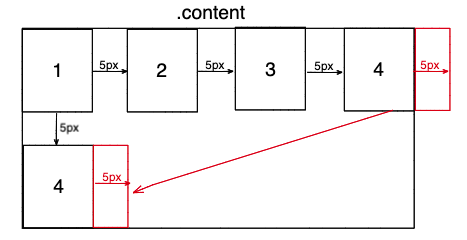- 如果水平方向剩余的空间不够显示浮动元素,浮动元素将向下移动,直到有充足的空间为止