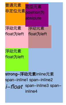 紧贴着包含块(一般是父元素)或者其他浮动元素的边界为止定位元素会层叠在浮动元素上面