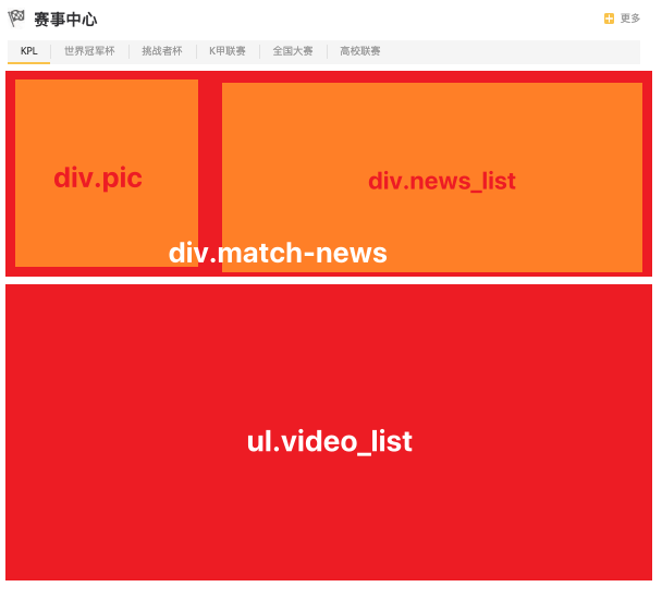 - div.area元素中有div.match-news,ul.video_list元素,垂直布局