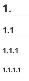 .sidebar-content { counter-reset: h1 } .outline-h1 { counter-reset: h2 } .outline-h2 { counter-reset: h3 } .outline-h3 { counter-reset: h4 } .outline-h4 { counter-reset: h5 } .outline-h5 { counter-reset: h6 } .outline-h1>.outline-item>.outline-label:before { counter-increment: h1; content: counter(h1) ". " } .outline-h2>.outline-item>.outline-label:before { counter-increment: h2; content: counter(h1) "." counter(h2) " " } .outline-h3>.outline-item>.outline-label:before { counter-increment: h3; content: counter(h1) "." counter(h2) "." counter(h3) " " } .outline-h4>.outline-item>.outline-label:before { counter-increment: h4; content: counter(h1) "." counter(h2) "." counter(h3) "." counter(h4) " " } .outline-h5>.outline-item>.outline-label:before { counter-increment: h5; content: counter(h1) "." counter(h2) "." counter(h3) "." counter(h4) "." counter(h5) " " } .outline-h6>.outline-item>.outline-label:before { counter-increment: h6; content: counter(h1) "." counter(h2) "." counter(h3) "." counter(h4) "." counter(h5) "." counter(h6) " " }