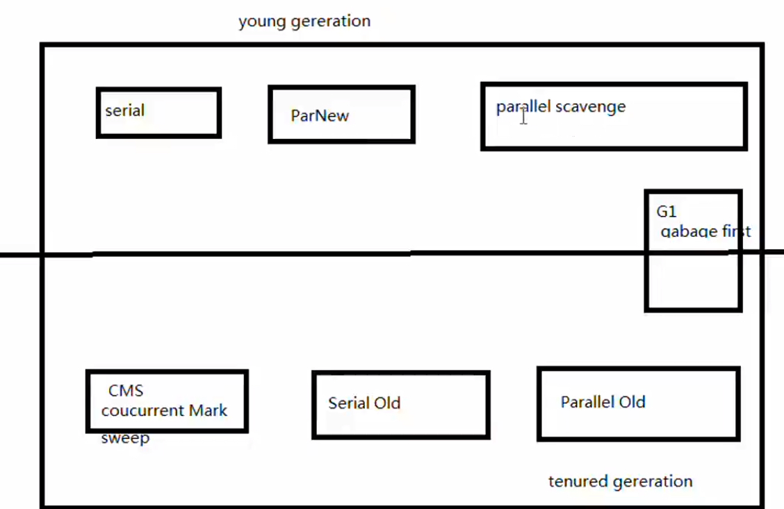 新生代,老年代,永久代。永久代是HotSpot虚拟机特有的概念,采用永久代的方法实现方法区。在jdk1.7中HotSpot已经开始去永久代,把字符串常量池移出。永久代中存放常量,类信息,静态变量等数据。新生代和老年代是垃圾回收的主要区域。