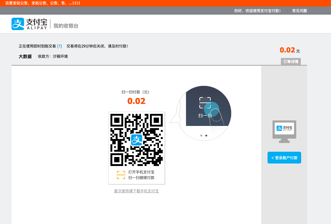 https://excashier.alipaydev.com/standard/timeOutPage.htm?payOrderId=1112dd699d4a468e9bf5fca83477178b.00