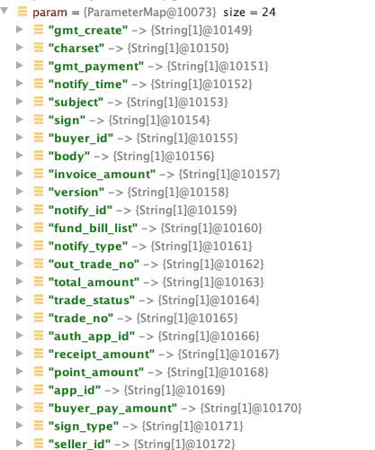 5.4.1.4.2. 回调 1 2 3 4 5 6 7 8 9 10 11 12 13 14 15 16 17 18 19 20 21 22 23 24 25 26 27 28 29 30 31 32 33 34 35 36 37 38 39 40 41 42 43 44 45 46 47 48 49 50 51 52 53 54 55 56 57 58 59 @Override public boolean notify (HttpServletRequest request, HttpServletResponse response) { Map<String, String> paramsMap = new HashMap <>(); Map<String, String[]> param = request.getParameterMap(); Set<String> keys = param.keySet(); for (String key:keys){ String[] values = param.get(key); String value = "" ; for (int i = 0 ; i < values.length; i++) { value = (i == values.length - 1 ) ? value + values[i] : value + values[i] + "," ; } paramsMap.put(key,value); } try { boolean signVerified = AlipaySignature.rsaCheckV1(paramsMap, alipayConfig.getALIPAY_PUBLIC_KEY(), alipayConfig.getCHARSET(), alipayConfig.getSIGN_TYPE()); if (signVerified){ log.info("订单创建时间戳:{} 商户订单号:{} 交易金额:{} 支付宝交易号:{} 收款支付宝账号:{}" , paramsMap.get("gmt_create" ), paramsMap.get("out_trade_no" ), paramsMap.get("total_amount" ), paramsMap.get("trade_no" ), paramsMap.get("seller_id" )); String orderId = paramsMap.get("out_trade_no" ); String trade_no = paramsMap.get("trade_no" ); String status = paramsMap.get("trade_status" ); Integer resultStatus = new StatusUtils ().getStatus(status); EduOrder order = eduOrderService.getById(orderId); order.setTradeNo(trade_no); order.setTradeStatus(resultStatus); eduOrderService.updateById(order); return true ; } } catch (AlipayApiException e) { log.error("getAliPayOrderStr error :{}" , e); } return false ; }