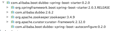 | <dependency> <groupId>com.alibaba.boot</groupId> <artifactId>dubbo-spring-boot-starter</artifactId> <version>0.2.0</version> </dependency>