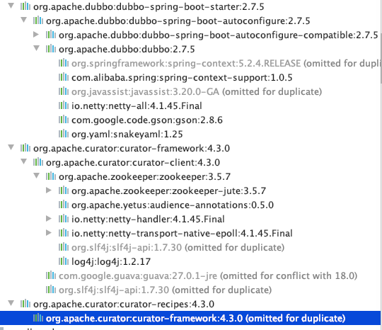<dependency> <groupId>org.apache.curator</groupId> <artifactId>curator-recipes</artifactId> <version>4.3.0</version> </dependency>