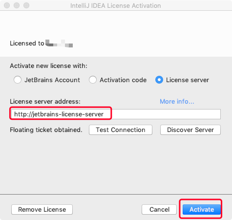 或者点击Discover Server,会自动把地址填入,地址填入后,再点击Activate ,就可以完成注册激活