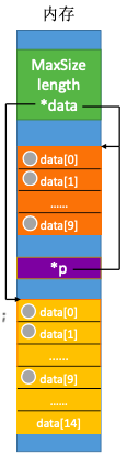 给各个数据元素分配连续的存储空间,大小为MaxSize*sizeof(ElemType)