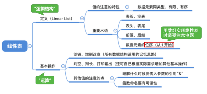 - a1是表头元素;an 是表尾元素。 除第一个元素外,每个元素有且仅有一个直接前驱;除最后一个元素外,每个元素有且仅有一个直接后继