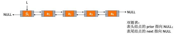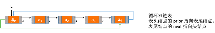| typedef struct DNode{ ElemType data; struct DNode *next, *prior; }DNode,*DLinkList;
