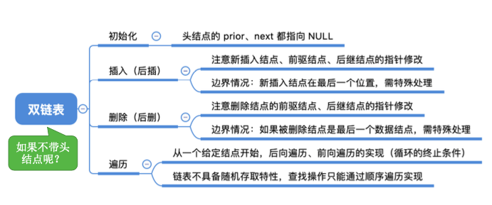 双链表不可随机存取,按位查找、按值查找操作都只能用遍历的方式实现。时间复杂度 O(n)