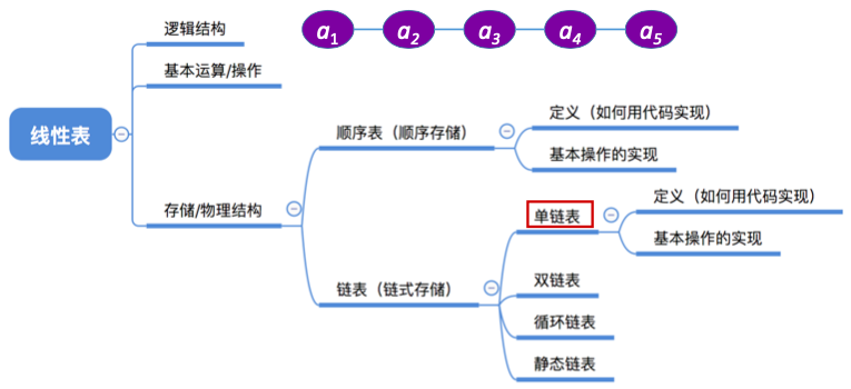线性表L逻辑结构:a1—>a2—>a3—>a4—>a5