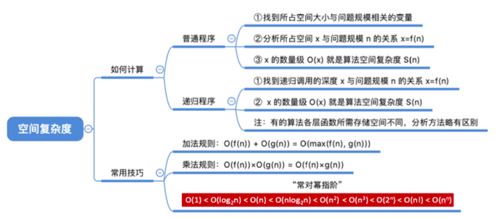 算法的空间复杂度S(n)定义为该算法所耗费的存储空间,它是问题规模n的函数。S(n)=O(g(n))