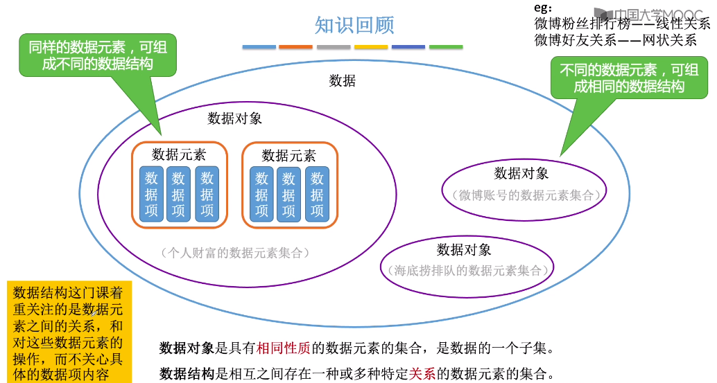 同样的数据对象里的数据元素可以组成不同的数据结构