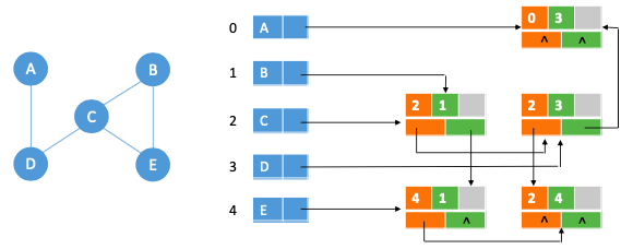 若E是无向边(简称边)的有限集合时,则图G为无向图。边是顶点的无序对,记为(v, w)或(w, v),因为(v, w) = (w, v),其中v、w是顶点。可以说顶点w和顶点v互为邻接点。边(v, w)依附于顶点w和v,或者说边(v, w)和顶点v、w相关联。