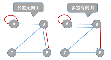 图G中某两个结点之间的边数多于一条,又允许顶点通过同一条边和自己关联, 则G为多重图