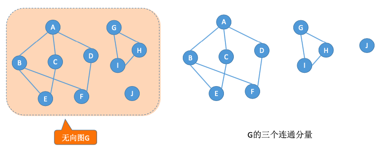 若无向图中任意两个顶点都是连通的,则称图G为连通图,否则称为非连通图。