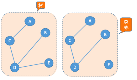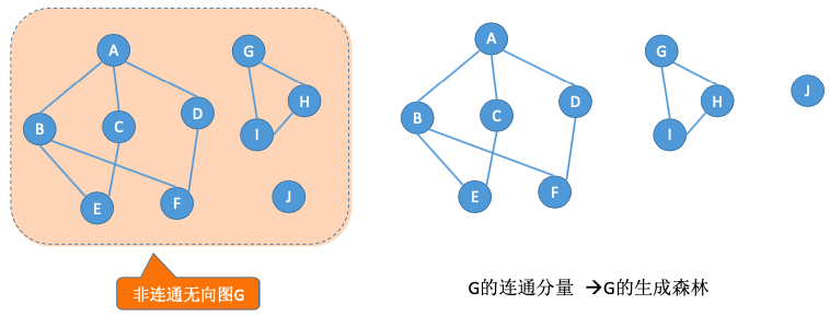 在非连通图中,连通分量的生成树构成了非连通图的生成森林。
