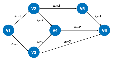 - 只有在某顶点所代表的事件发生后,从该顶点出发的各有向边所代表的活动才能开始;