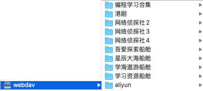 - 现在就可以通过访达访问阿里云盘了,可以在此直接对阿里云盘进行管理,包括上传文件和下载文件